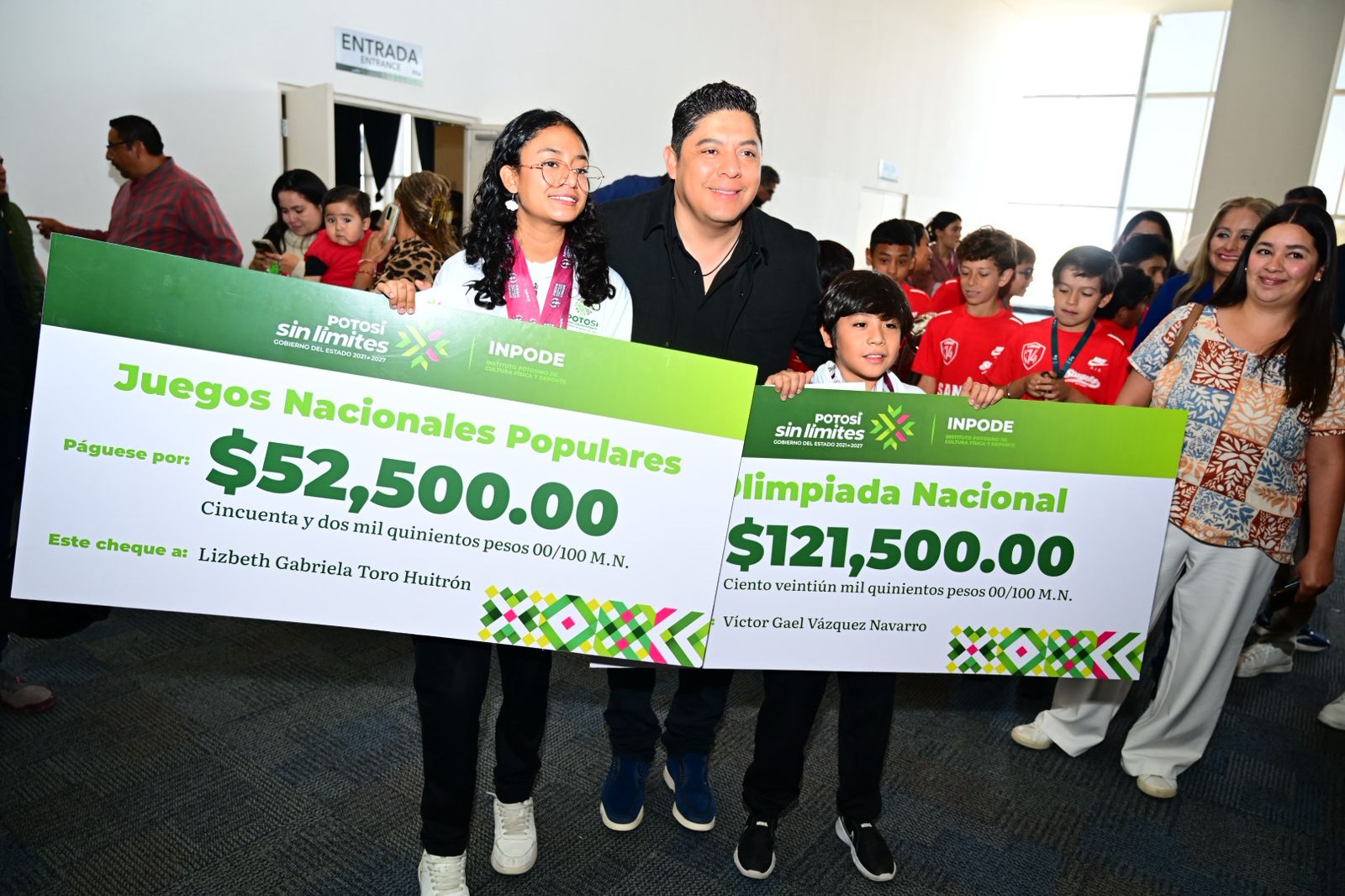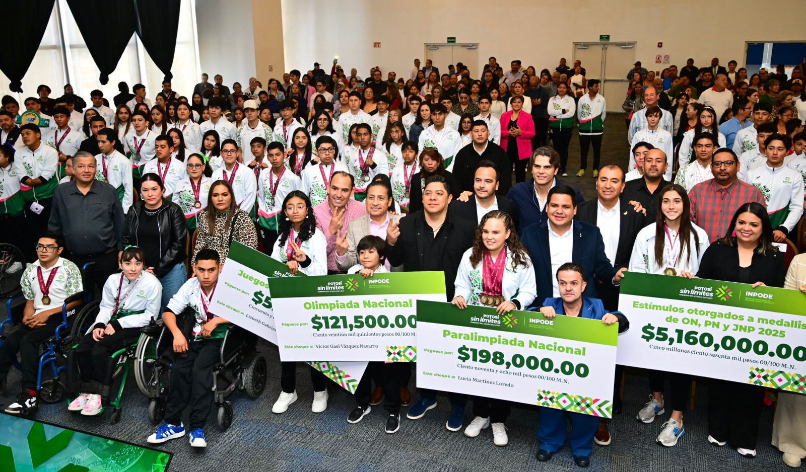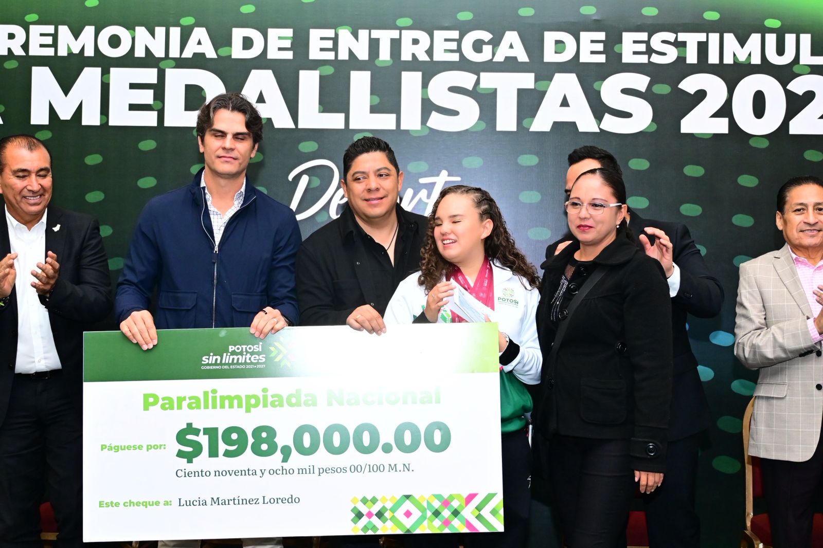 El Gobernador de San Luis Potosí Ricardo Gallardo Cardona, entregó estímulos económicos por 5 millones 160 mil pesos a 136 deportistas que obtuvieron medallas en los Nacionales y Paranacionales Conade 2025, así como en los Juegos Nacionales Populares, donde destacó que el deporte potosino vive su mejor etapa con el trabajo de las y los jóvenes y el apoyo sin límites de la administración.