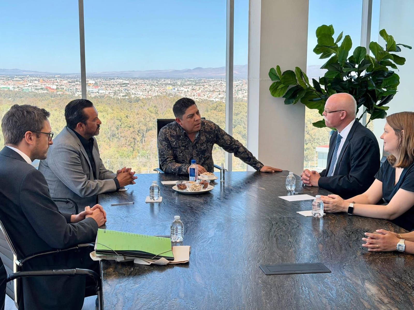 Durante la reunión de trabajo, presentó las ventajas competitivas de San Luis Potosí como un destino atractivo para la inversión extranjera, destacando su ubicación estratégica, la disponibilidad de mano de obra calificada y la conectividad que brindan las nuevas carreteras que enlazan a la entidad con la frontera norte, estados vecinos y los principales puertos del país.