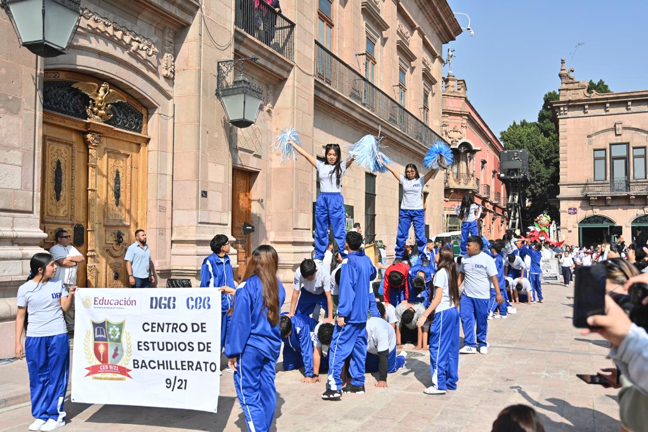 Durante el recorrido, las y los espectadores admiraron carros alegóricos, grupos folclóricos, equipos deportivos que mostraron su talento, boxeadores que al aire marcaban sus rutinas, niñas y niños que mostraban su talento de artes marciales, escuelas de la Secretaria de Educación del Gobierno del Estado (SEGE) y del Sistema Educativo Estatal Regular (SEER) que hacían coreografías, integrantes del Pentatlón, medallistas y deportistas de alto rendimiento, que enriquecieron el desfile, junto al Ejército Mexicano, la Guardia Nacional y la Guardia Civil Estatal.