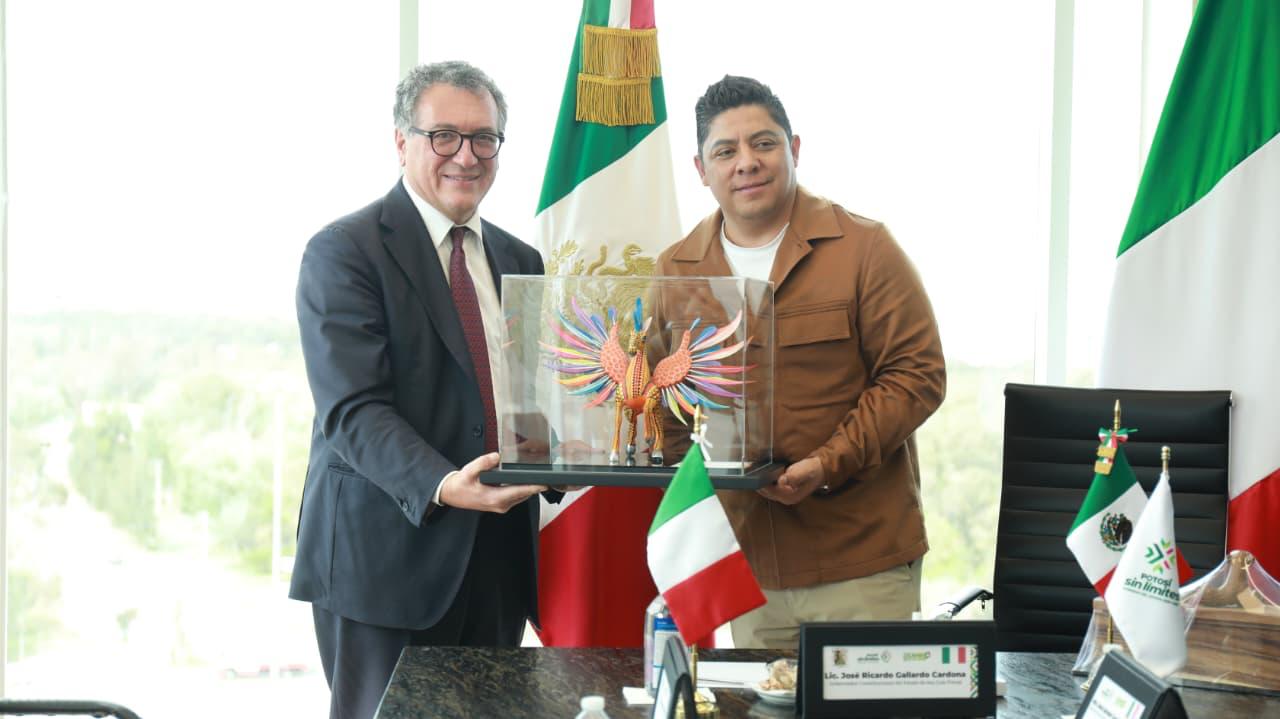 El Gobernador Ricardo Gallardo destacó que la consolidación de relaciones bilaterales con Italia es parte fundamental de la estrategia para impulsar el crecimiento económico del Estado, por lo que reiteró la disposición de su Gobierno para fortalecer alianzas con otras naciones en temas vinculados al desarrollo sostenible, la innovación tecnológica, la capacitación policiaca y el intercambio académico y cultural.