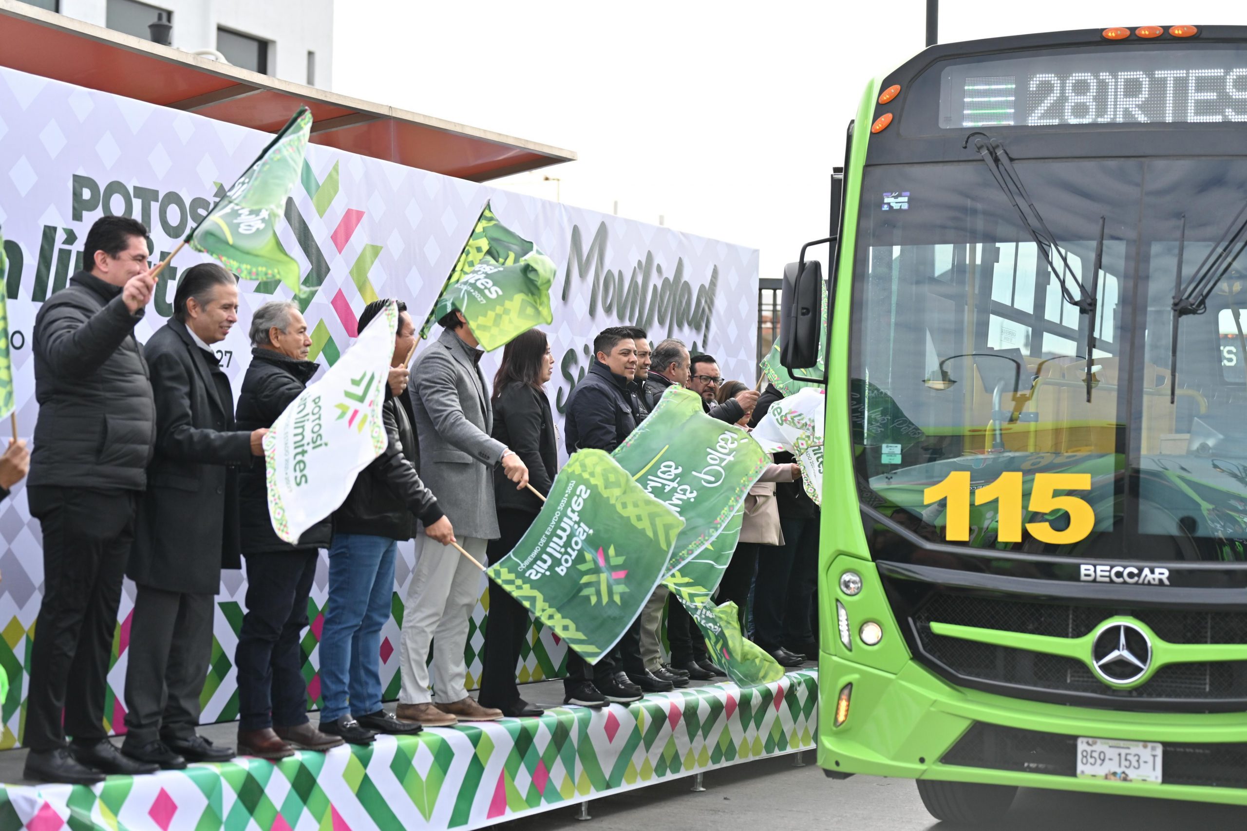 Ricardo Gallardo, acompañado por familias y representantes del sector transportista, subrayó que la modernización permitirán tener unidades más seguras, incluyentes y sustentables, con la renovación de las rutas prioritarias: 9, 19, 4, 15, 20, 2, 6, 1, 3 y 13, además de que anunció las nuevas rutas de MetroRed, de Ciudad Valles a Tamazunchale, de Rioverde a Ciudad Fernández y una nueva en Soledad de Graciano Sánchez, desde Enrique Estrada pasando por el aeropuerto internacional hasta llegar a la Alameda.