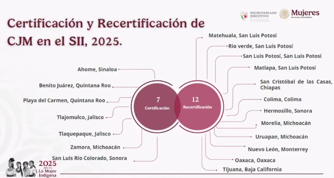 El Centro de Justicia para las Mujeres (CJM) obtuvo la recertificación nacional en sus sedes de la capital, Matehuala, Rioverde y Matlapa, tras acreditar la totalidad de los 21 indicadores dinámicos del Sistema de Integridad Institucional (SII) 2025. El reconocimiento fue otorgado por instancias federales durante el Encuentro Nacional de Centros de Justicia para las Mujeres, celebrado en la Comisión Nacional de los Derechos Humanos (CNDH) en la Ciudad de México.