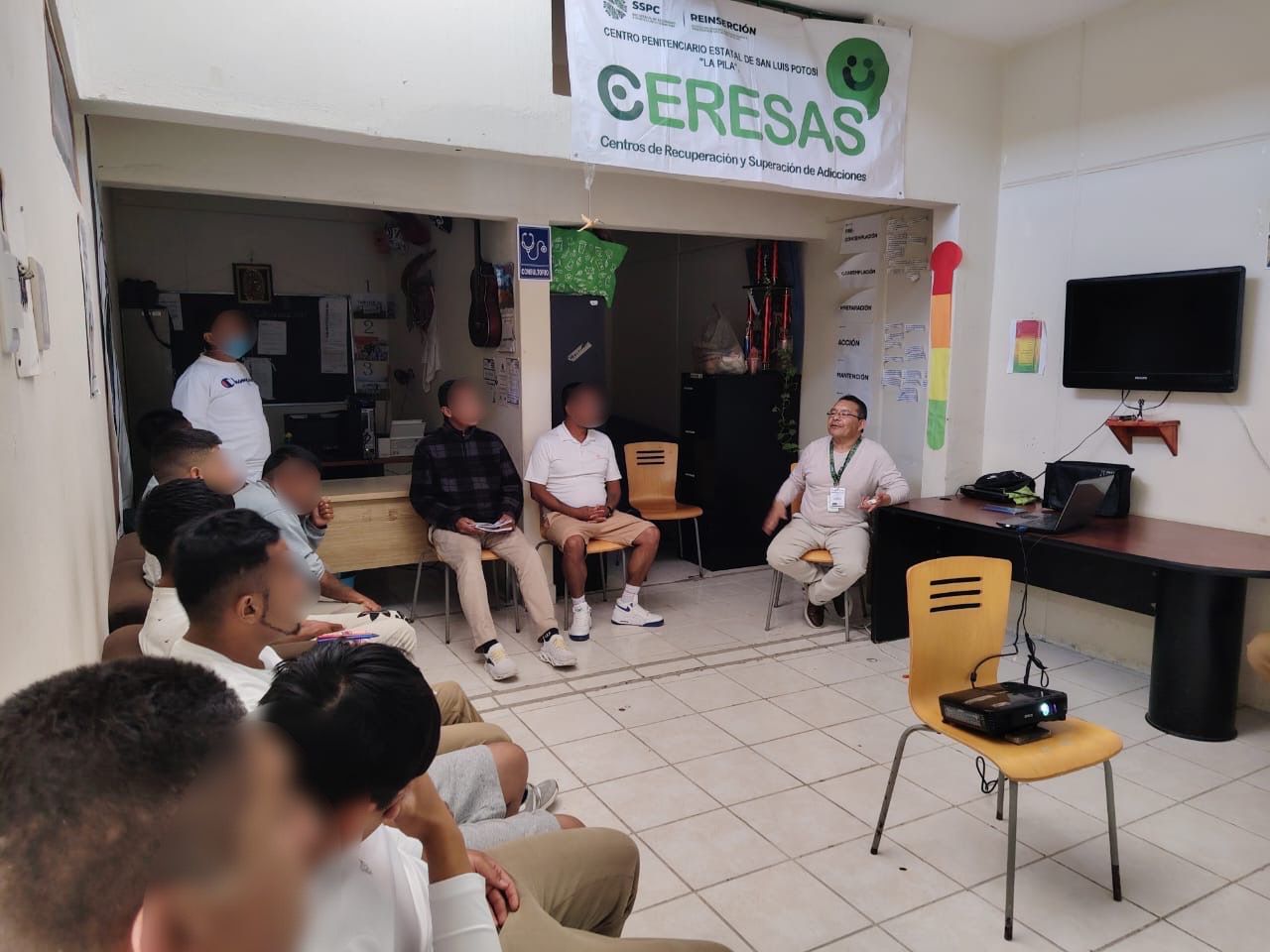 Siguiendo la instrucción del Gobernador Ricardo Gallardo Cardona de acercar atención sin límites a todos los sectores, el Instituto Temazcalli refuerza las actividades de prevención y rehabilitación de adicciones en el Centro de Reinserción Social (CERESO) de La Pila. Estas labores contemplan estrategias psicoeducativas dirigidas tanto a personas privadas de la libertad (PPLs) integradas en los programas de recuperación, como a la población general del Centro, beneficiando a hombres y mujeres.