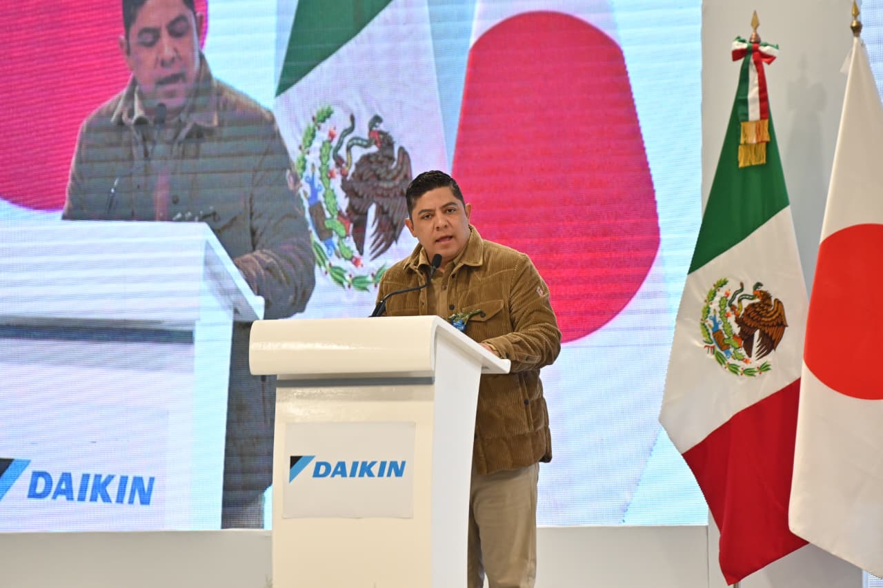 Ricardo Gallardo Cardona, Gobernador de San Luis Potosí, encabezó la apertura del nuevo Complejo Daikin Manufacturing, proyecto de la empresa japonesa, fabricante de aires acondicionados y sistemas de refrigeración, con el que invirtió en el Estado 310 millones de dólares, lo que generará más de 3 mil empleos directos para las y los potosinos, constatando, así, el importante avance que la entidad mantiene en su economía y la inversión industrial.