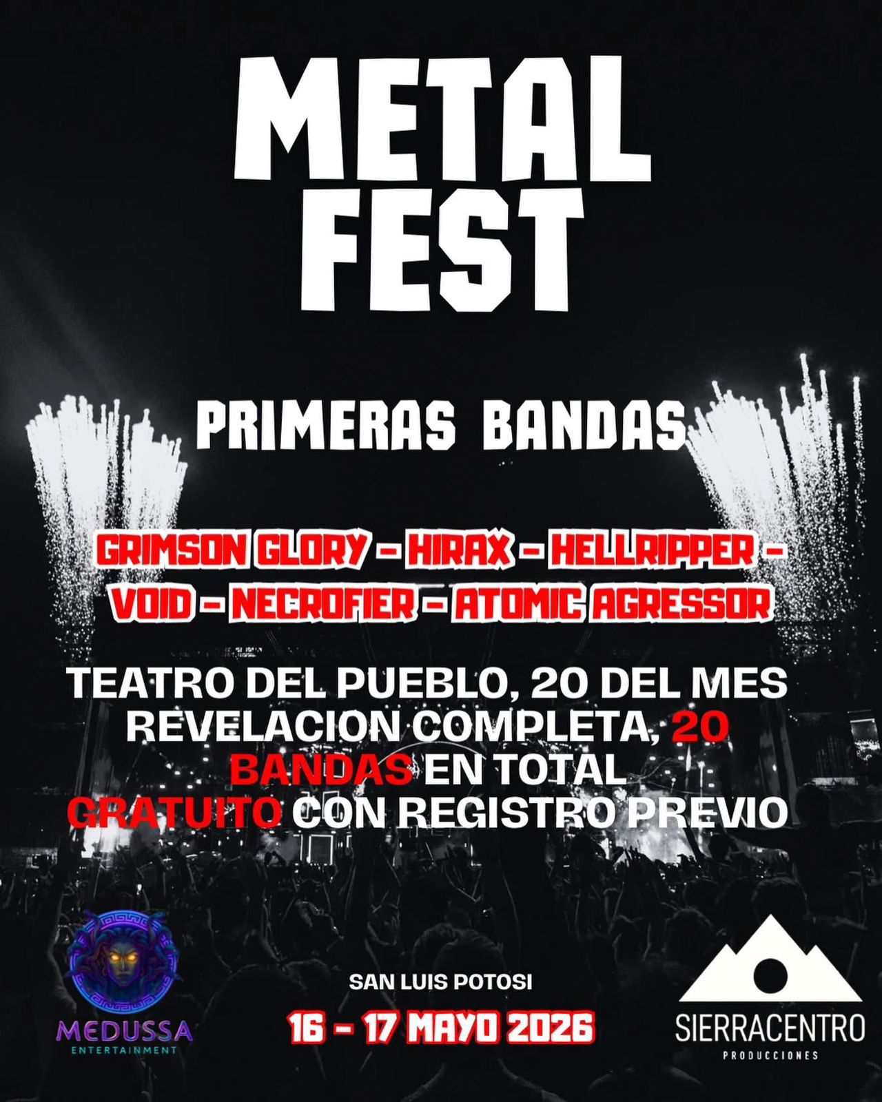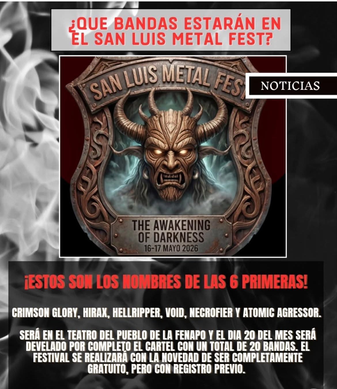 Además el 20 de diciembre se revelará el cartel completo, integrado por 20 bandas. El festival será gratuito, con acceso mediante registro previo en https://san-luis-metalfest.vercel.app/, consolidando a San Luis Potosí como un referente nacional del metal.