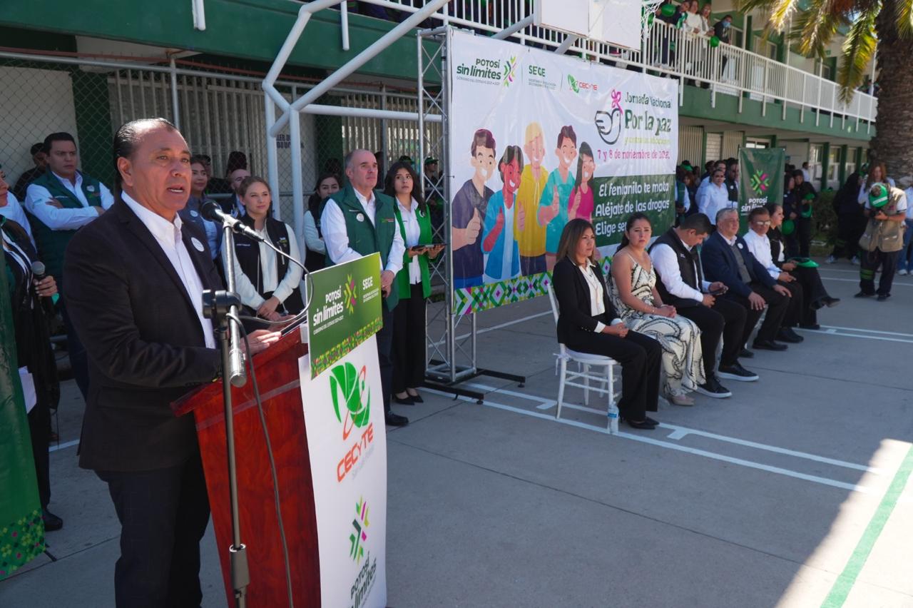 San Luis Potosí participó en la “Jornada Nacional por la Paz y contra las Adicciones”, en los niveles educativos de secundaria, media superior y superior, con actividades deportivas, artísticas, culturales y charlas informativas en donde participaron poco más de 300 mil estudiantes, además de cuerpo académico y comités de padres de familia, como parte de la estrategia nacional: “Si te drogas, te dañas; el fentanilo te mata, aléjate de las drogas y elige ser feliz.”