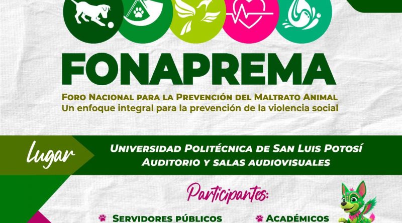 El foro se llevará a cabo los días 16 y 17 de octubre en la Universidad Politécnica de San Luis Potosí, con entrada gratuita y registro previo en http://fonaprema.littsw.com. Participarán expertas y expertos como Lucía Gabriela Rosales, Martín Dávila, Angélica Hernández y Esaú Monsiváis, quienes abordarán temas clave como la salud mental, el enfoque “Una sola salud” y la valoración clínica del animal maltratado.