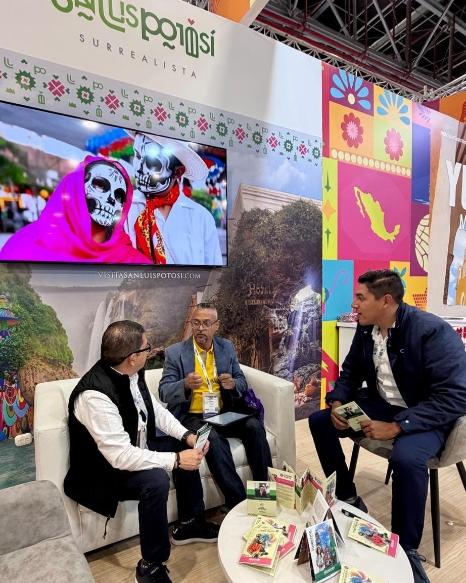 Durante el encuentro se promovieron artesanías, mezcales y rebozos, además de materiales audiovisuales que muestran la riqueza natural, cultural y de aventura que distingue a la entidad. También se sostuvieron entrevistas con medios especializados y se concretaron citas de negocio con tour operadores interesados en integrar la oferta potosina, especialmente en los segmentos de aventura y experiencias auténticas, fortaleciendo así el cambio que se vive y se siente en el sector turístico del Estado.