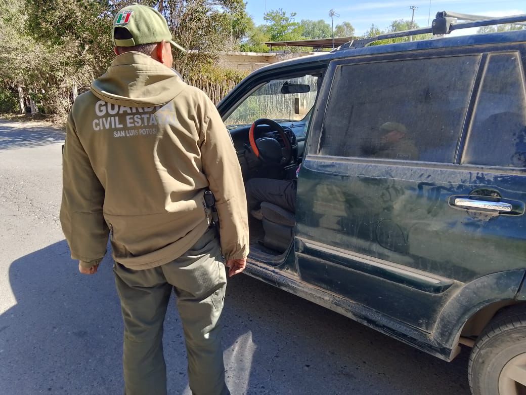 Por parte de la Guardia Civil Estatal, se especifica su presencia en carretera federal 80 tramo San Luis Potosí-Lagos de Moreno (Libre) kilómetro 32.5 entronque con la carretera federal 80 tramo San Luis Potosí-Lagos de Moreno, carretera Federal 57 San Luis-Querétaro localidad de Santo Domingo, perteneciente a Santa María del Río y carretera Federal 37 San Felipe-Villa de Reyes en coordinación con efectivos de la Defensa.