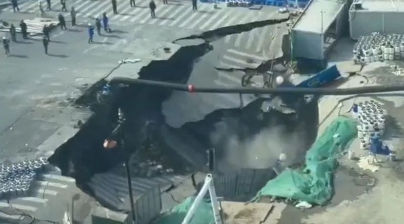 SE FORMA ENORME SOCAVÓN EN SHANGHÁI DURANTE TRABAJOS DE AMPLIACIÓN DEL METRO