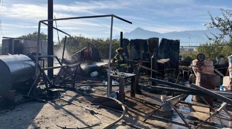 Un hombre terminó con quemaduras de primer y segundo grado luego de que un chispazo, durante trabajos de corte y soldadura, provocara la explosión de un tanque de gas y un incendio en un taller en construcción, en el municipio de García, Nuevo León.