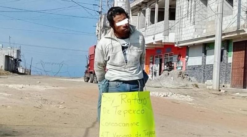 Al sujeto lo amarraron a un poste y le colocaron una cartulina con la leyenda: “soy ratero de Tepexco”.