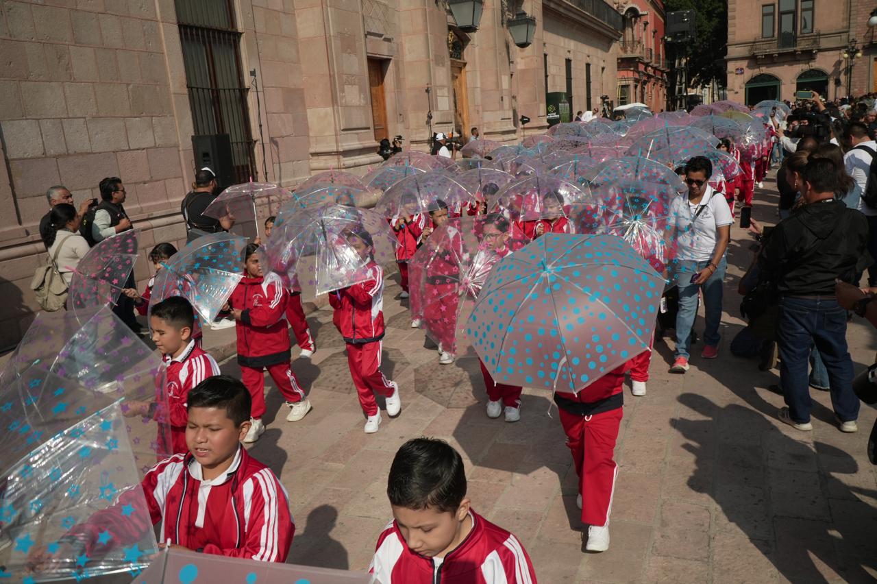 • Estudiantes y personal educativo llenaron de colorido y participación cívica el centro histórico, fortaleciendo la identidad nacional impulsada por el Gobierno del Estado.