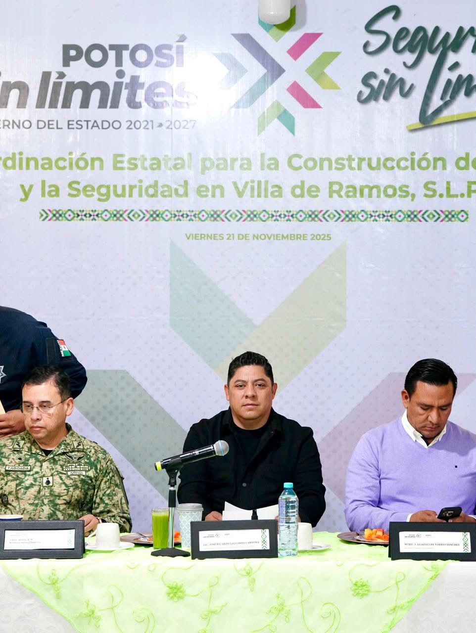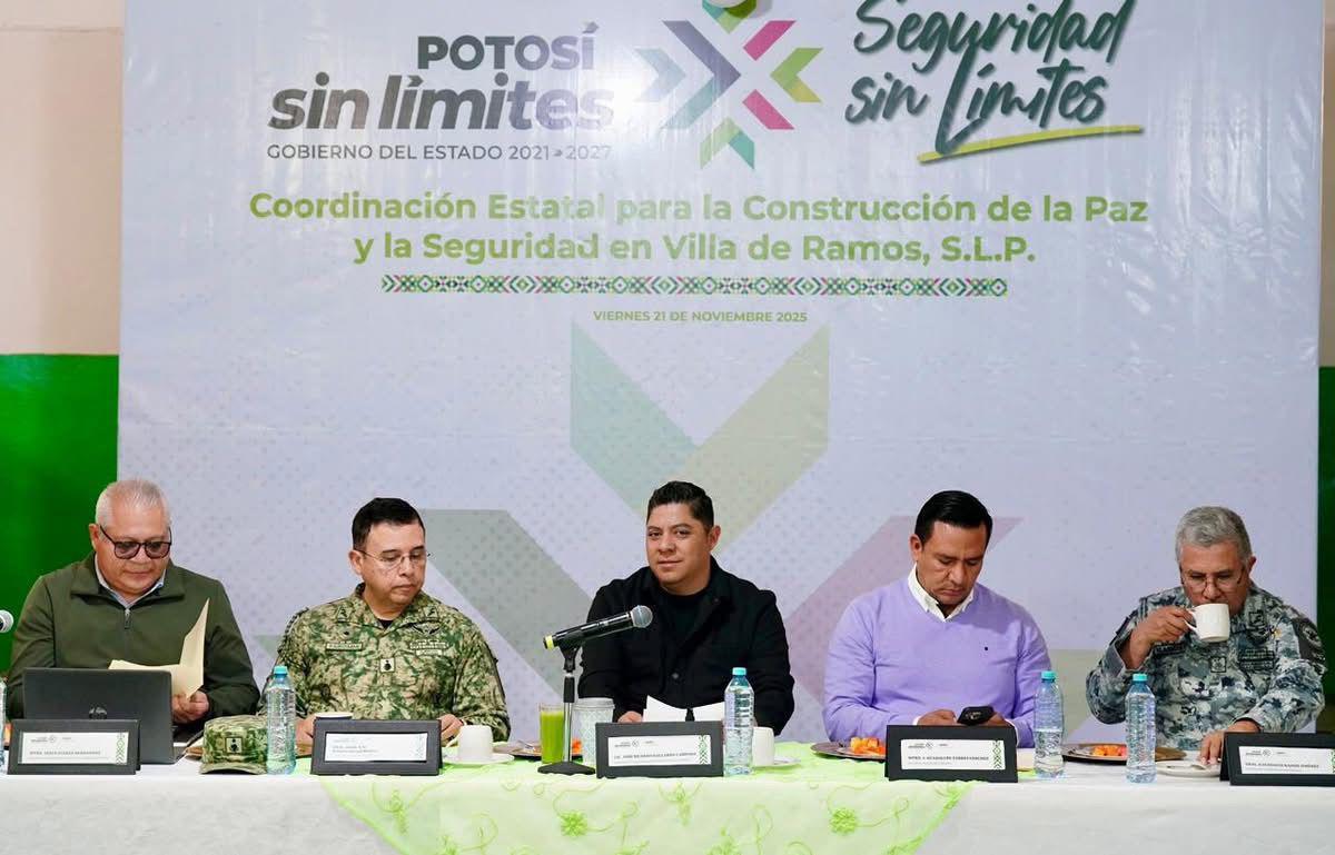 Villa de Ramos S.L.P.- En el marco de la Mesa itinerante de Seguridad encabezada la mañana de este viernes por el Gobernador Ricardo Gallardo Cardona y el Secretario de Seguridad en el Estado, Jesús Juárez Hernández, se hizo un exhorto a los Gobiernos Municipales que colindan con el vecino estado de Zacatecas a no bajar la guardia y seguir implementando estrategias conjuntas a efecto de blindar las franjas limítrofes para evitar la llegada y operación de células delincuenciales.