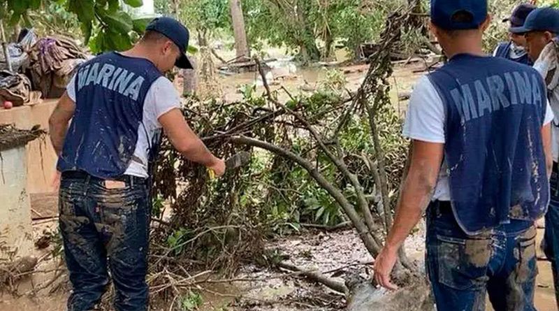 La Secretaría de Marina-Armada de México (Semar) mantiene el Plan Marina, en su fase de auxilio, en apoyo a la población de Veracruz, Puebla, San Luis Potosí e Hidalgo, con trabajos de limpieza en hogares; remoción de lodo y escombros de calles y carreteras principales, y entrega de despensas.