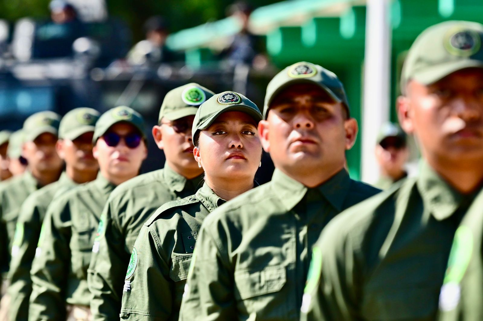 Con la representación de los tres poderes del Estado y autoridades de seguridad, el Mandatario potosino reconoció el esfuerzo de las y los cadetes y de sus familias, madres, padres, abuelos, hermanos y sus hijas e hijos, quienes también presenciaron el acto, tras afirmar que su ingreso a las filas de la corporación policial, fortalece a la Guardia Civil Estatal, con el objetivo de consolidar un modelo de seguridad moderno, humano y eficaz, ayudado de equipamiento y tecnología.