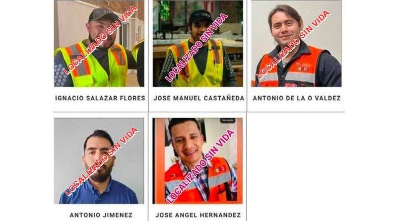 También, se encuentran identificados, José Antonio Jiménez Nevárez, de 34 años, el ingeniero, Jesús Antonio de la O Valdez, de 30 años, originario del estado de Chihuahua y José Castañeda Hernández, de 35 años, originario de Taxco, Guerrero, sobre el resto del grupo de trabajadores mineros, no se tiene información.