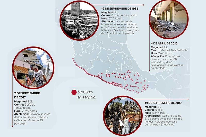 Agregó que de manera complementaria, desde hace décadas opera el Sistema de Alerta Sísmica Mexicano (Sasmex), una red de 97 sensores sísmicos administrada por la organización Centro de Instrumentación y Registro Sísmico (Cires), especializada en detectar movimientos telúricos y emitir alertas.
