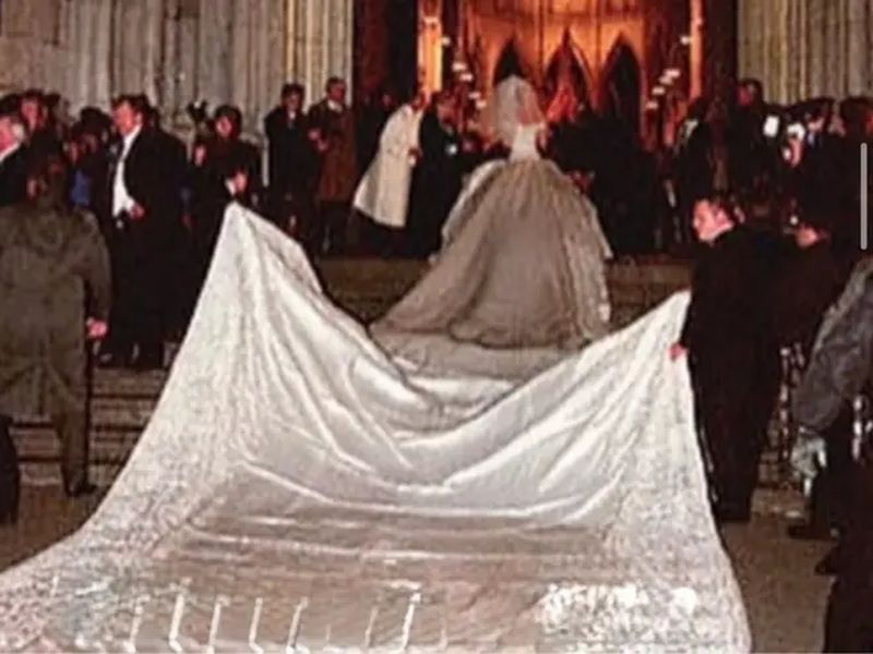 Pero si hubo un elemento que marcó para siempre la memoria colectiva, ese fue la cola del vestido: un impresionante despliegue de 17 metros que complementaba la magnificencia del diseño.