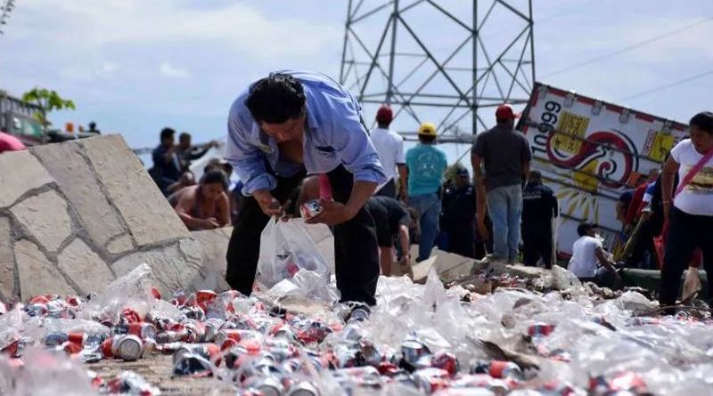 TRAS ACCIDENTE DE TRÁILER EN VERACRUZ, POBLADORES SAQUEAN ¡CARTONES DE CERVEZA!