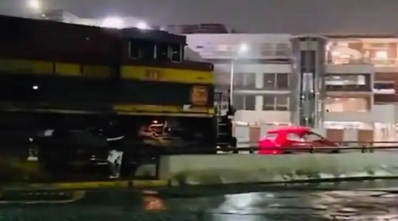 VEHÍCULO QUEDA ATORADO EN LAS VÍAS Y SE LO LLEVA EL TREN