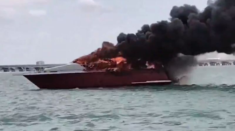 YATE SE INCENDIA FRENTE A LAS COSTAS DE PROGRESO EN YUCATÁN; TRIPULANTES SE LANZAN AL MAR